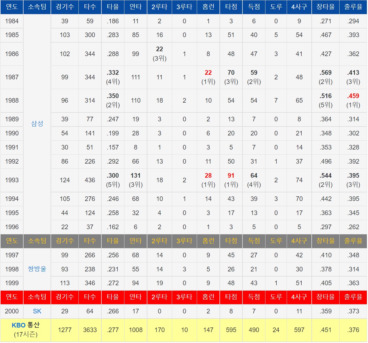 | KBO 한국 프로야구 1993년 김성래부터 2003년 이승엽까지 역대 홈런왕 계보 (0) | 2023.01.03 |